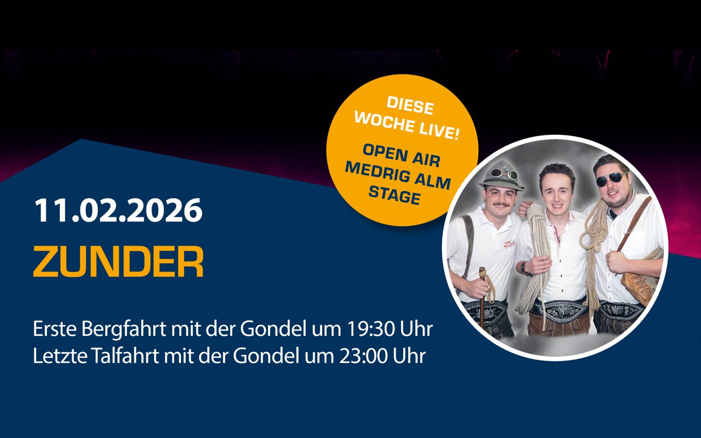 - 20:30 Uhr bis ca. 22:00 Uhr: Live Konzert auf der Medrig Alm Bühne