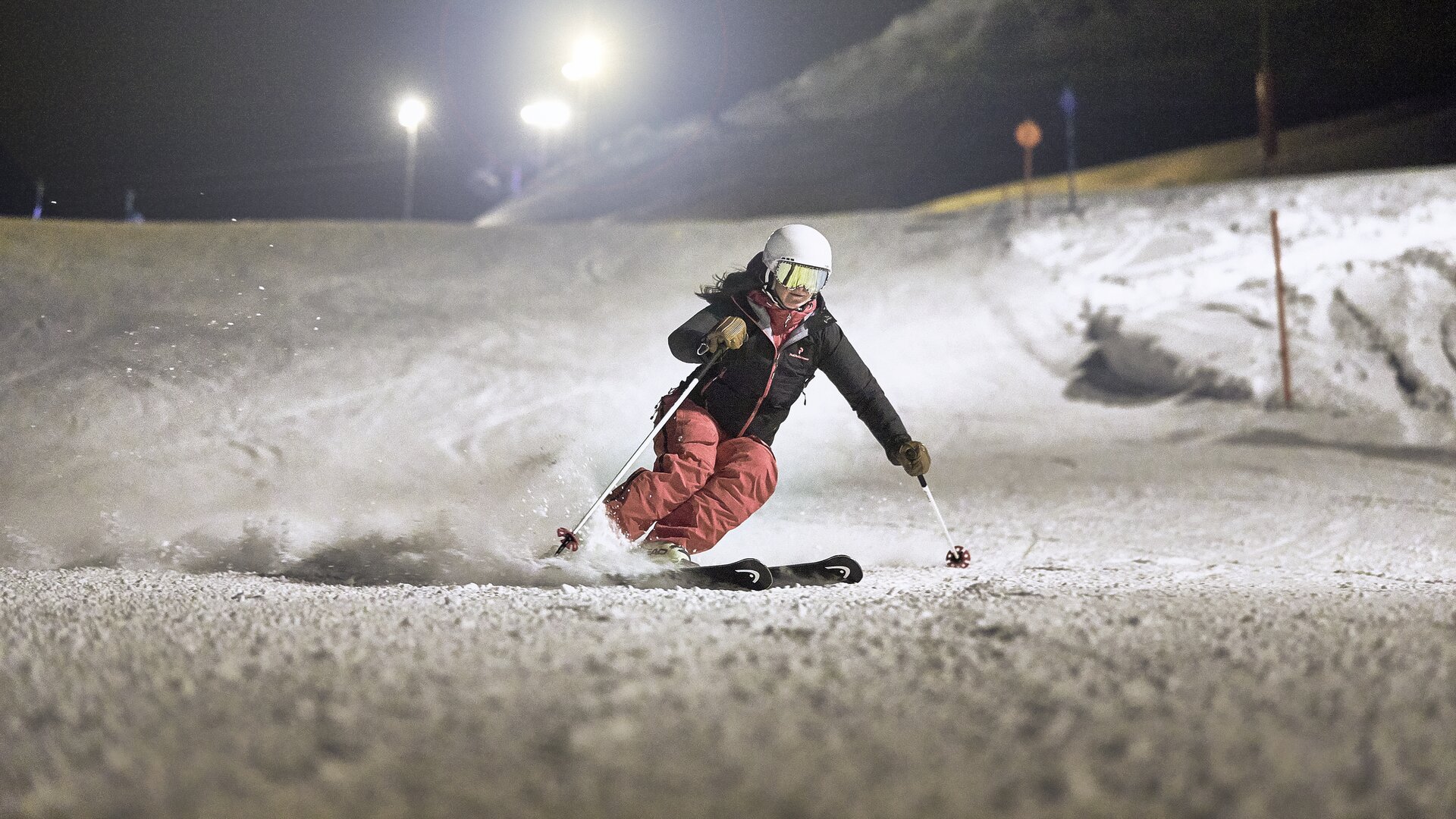 Die Nachtskilauf-Strecke im Skigebiet Silvapark ist 2,2 Kilometer lang.