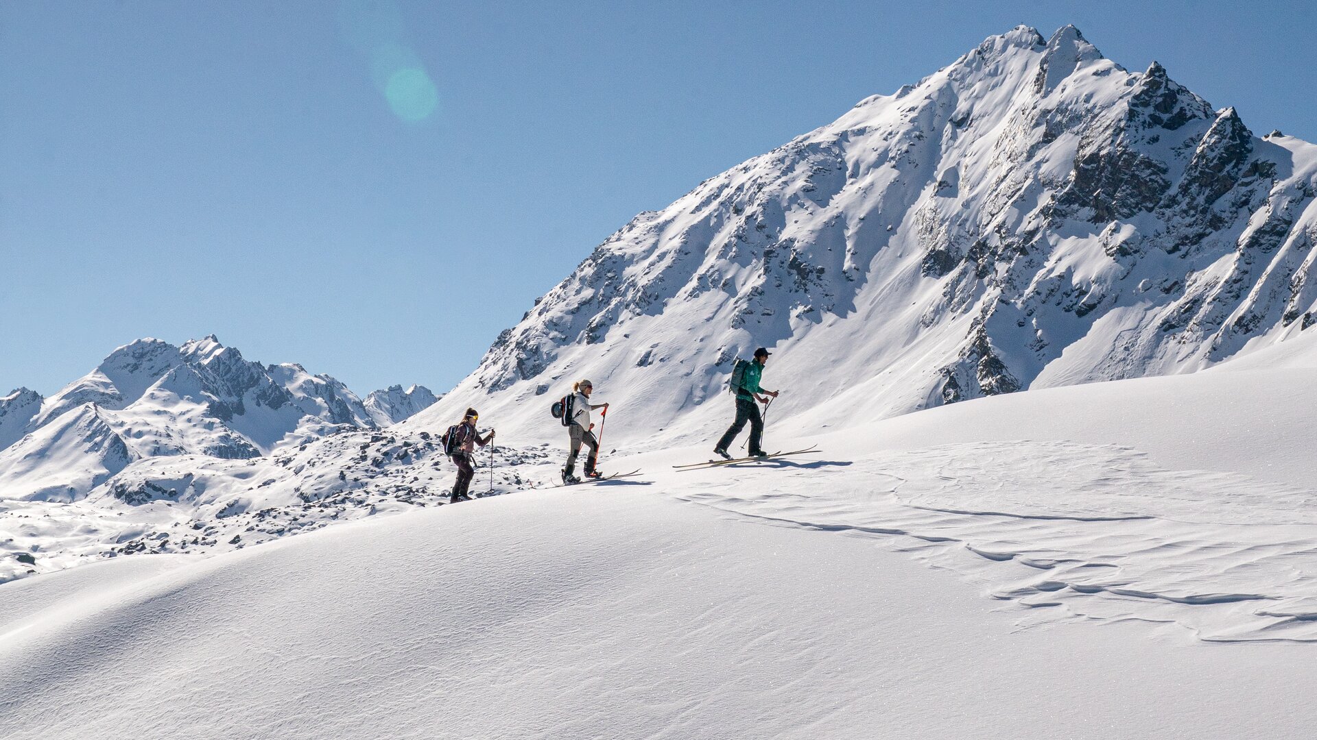 Ob für Neulinge oder Profis – in Galtür gibt es für jedes Level an Erfahrung eine passende Skitouren-Route. Die Strecke von der Bielerhöhe am Silvretta-Stausee zur Wiesbadener Hütte ist optimal für Einsteiger geeignet. Bereits erfahrene Skitourengeher wählen die Route von der Jamtalhütte bis auf die Hintere Jamspitze. Eine besonders lohnenswerte, aber zugleich anspruchsvolle Tour verläuft von der Jamtalhütte über die Weilenmannrinne zum Südlichen Fluchthorn. Wer auf Nummer sicher gehen will, schließt sich einer geführten Skitour an.